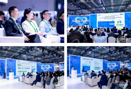 沙龙以绿色低碳为核心议题,系统呈现了从标准建设到材料创新、从制造升级到产业协同的全链条绿色实践。中远海运发展总经理王坤辉先生出席沙龙活动并致辞。上海寰宇全面介绍了集装箱CFP&EPD平台的建设进展与应用成效,重点展示了公司在“绿色材料、绿色生产、绿色能源、绿色产品”四个维度的协同推进成果;同时分享了通过产学研合作,联合产业链伙伴推动绿色技术落地的最新进展,充分展示公司在绿色标准引领与生态共建中的系统性探索。凯赛生物介绍了生物基材料在冷藏集装箱中的应用,宝武欧冶云商则分享了钢铁全产业链EPD平台及助力航运绿色低碳发展的实践。